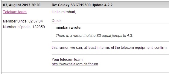 La notizia è stata riportata tramite il forum ufficiale della società e, sebbene il tutto riguardi solamente la versione brandizzata Deutsche Telekom, questa non è altro che una conferma dell’update ad Android 4.3 per tutti i Galaxy S3.